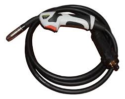Antorcha MIG modelo 15 AK MB15, 3 m, estructura de acero, compatible con máquinas MIG/MAG (p. ej. NBC/MIG‑200S, 200Y, 200F, 250Y, 250F), con alambre crudo calibre 40; peso aproximado de 3 kg y espesor de 1 mm, con posible cable de 16 mm (a confirmar).