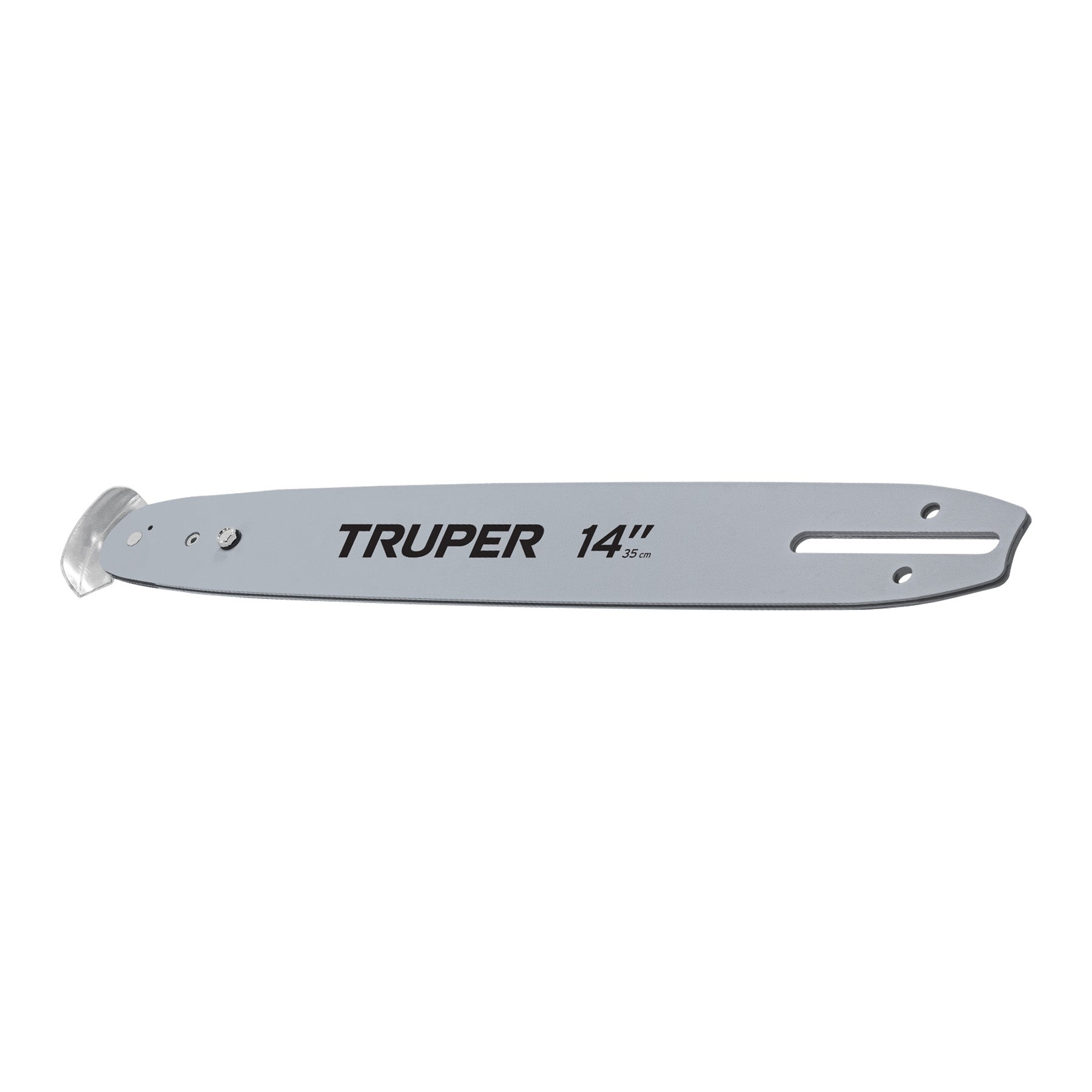 Barra guía de repuesto de 14 pulgadas diseñada para motosierras, fabricada con materiales resistentes y duraderos que garantizan precisión y un rendimiento óptimo en el corte. Ideal para trabajos de poda, tala y corte de madera.