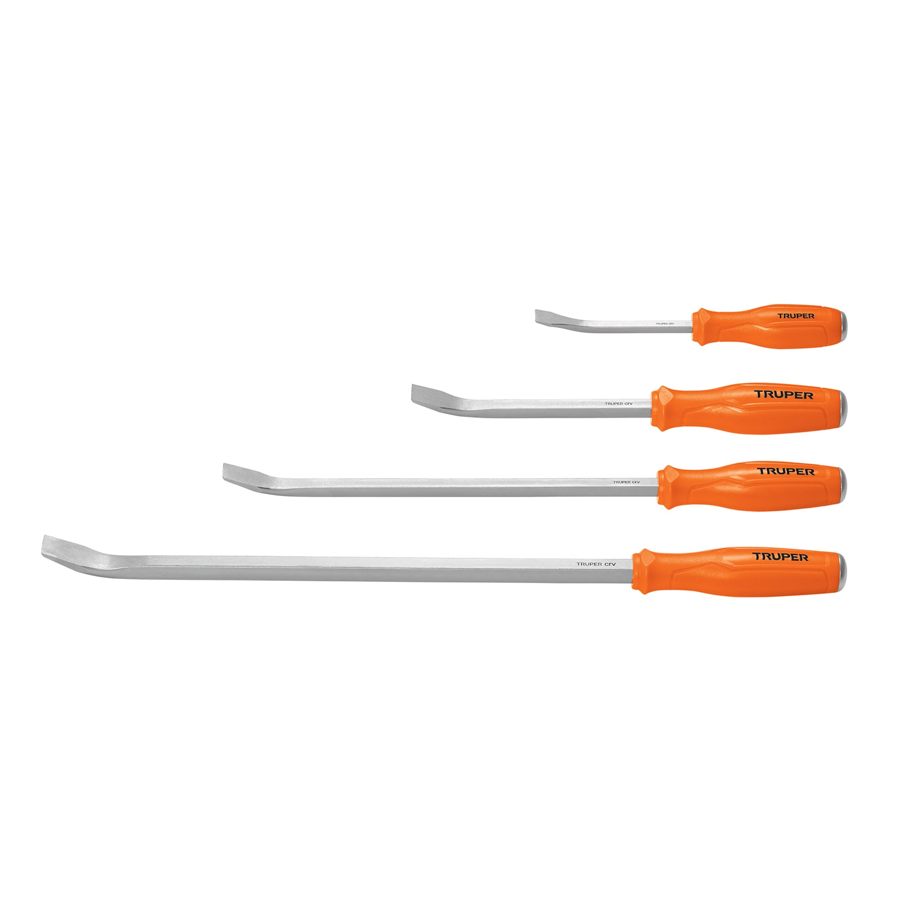 Juego de 4 barras de palanca diseñado para facilitar la extracción y ajuste de piezas en trabajos mecánicos y de ensamblaje. Fabricadas con materiales resistentes que garantizan durabilidad y un rendimiento confiable, ideales para talleres, mantenimiento y aplicaciones profesionales que requieren fuerza y precisión.