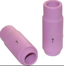 Boquilla cerámica número 7 para antorchas de soldadura TIG. Diseñada para dirigir el flujo de gas protector (como argón) hacia el área de soldadura, asegurando un arco estable y protección del material fundido. Su tamaño intermedio es ideal para trabajos generales en acero inoxidable, acero al carbono y otros metales no ferrosos