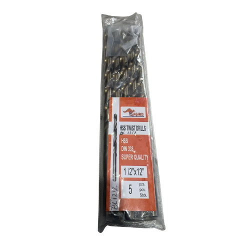 Broca de acero rápido (HSS) con diámetro de 1/2" y longitud de 12", diseñada para perforaciones profundas en metal, plástico y madera. Ofrece alta durabilidad, resistencia al calor y precisión en el corte. Ideal para uso profesional e industrial en trabajos que requieren mayor alcance.