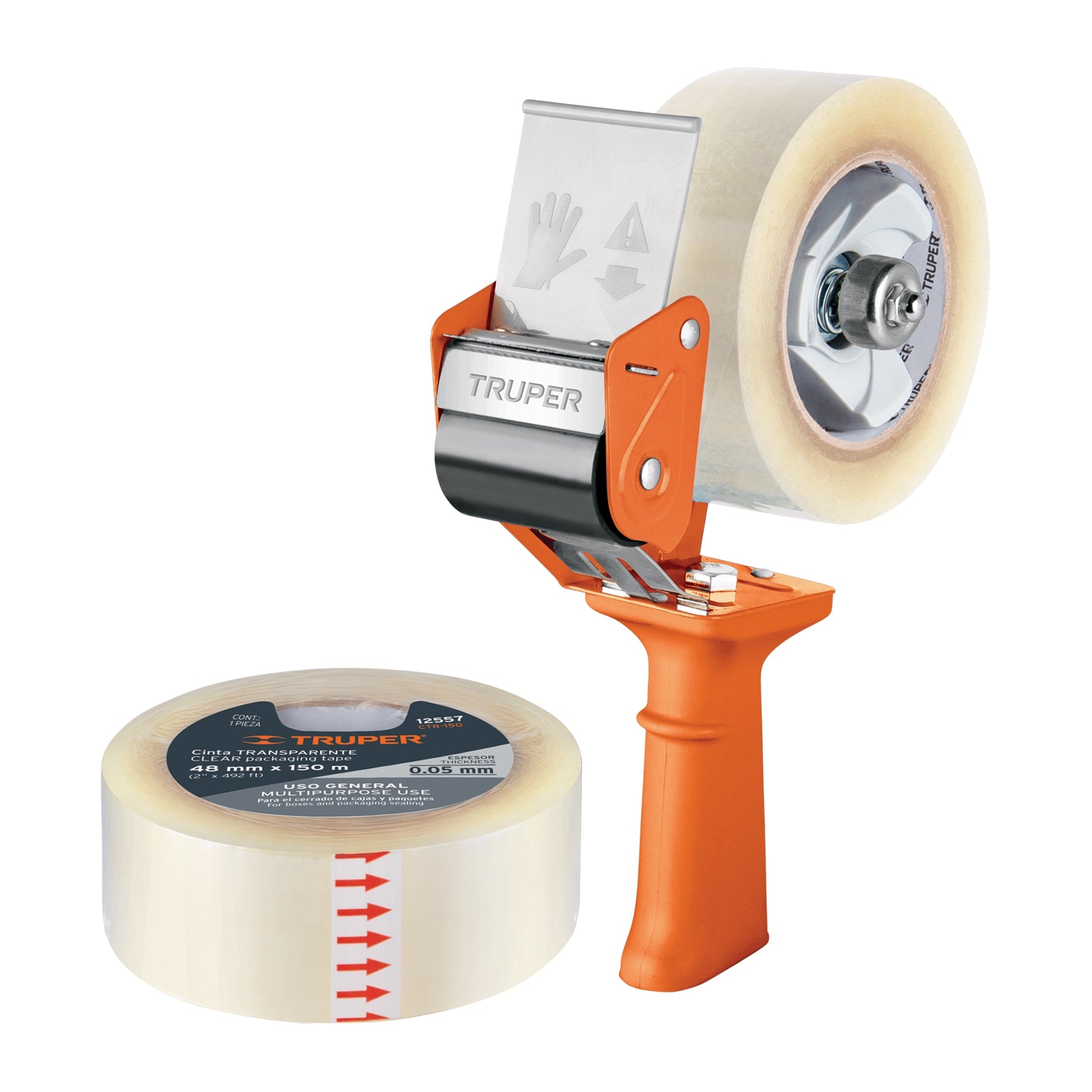 Herramienta diseñada para facilitar la aplicación de cinta de embalaje, asegurando cortes precisos y rápidos. Ideal para empaques, envíos y trabajos de logística, ofreciendo eficiencia, comodidad y un manejo seguro.