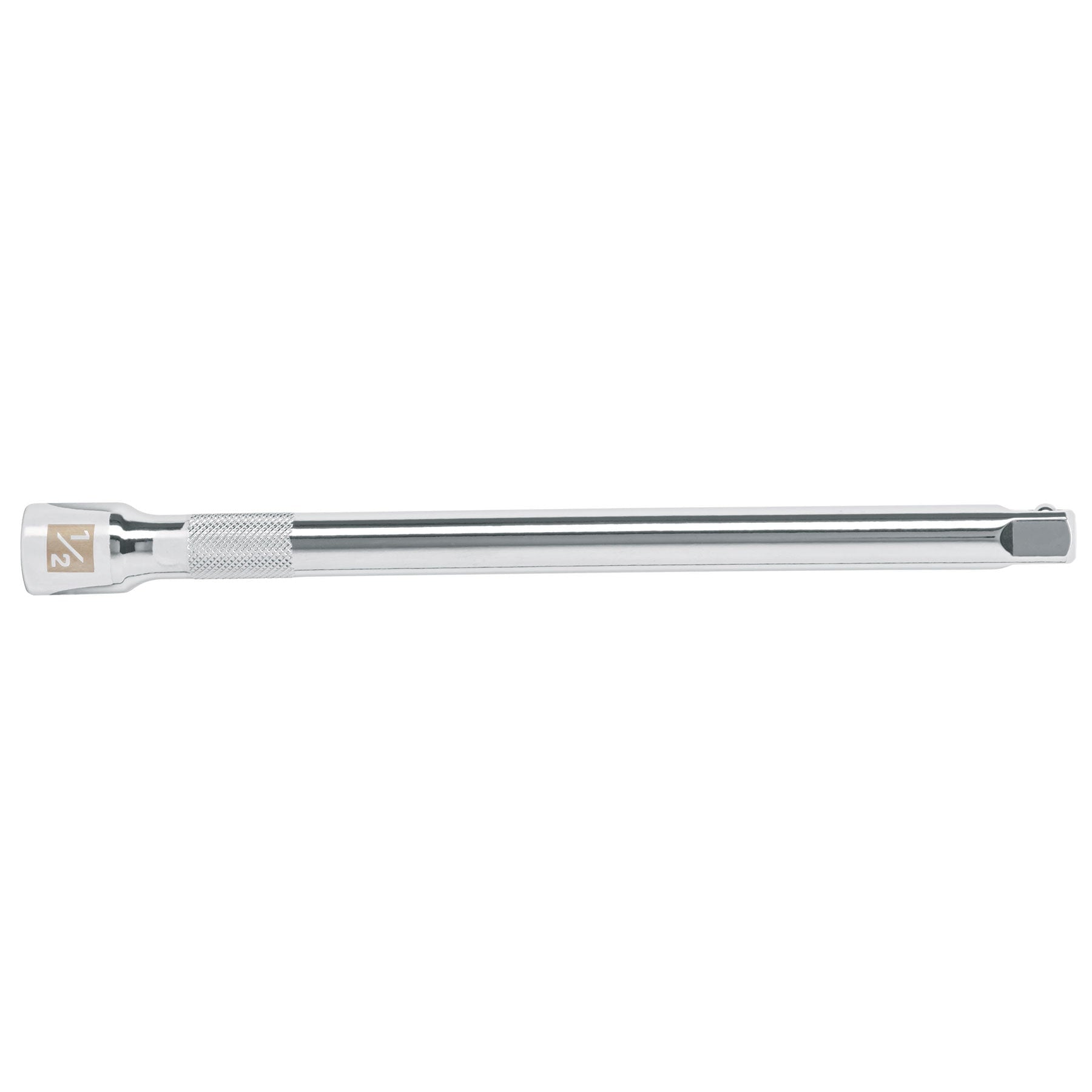 Extensión de 10" para ratchet, cuadro 1/2", diseñada para alcanzar tuercas y pernos en espacios profundos o de difícil acceso, compatible con copas de 1/2".