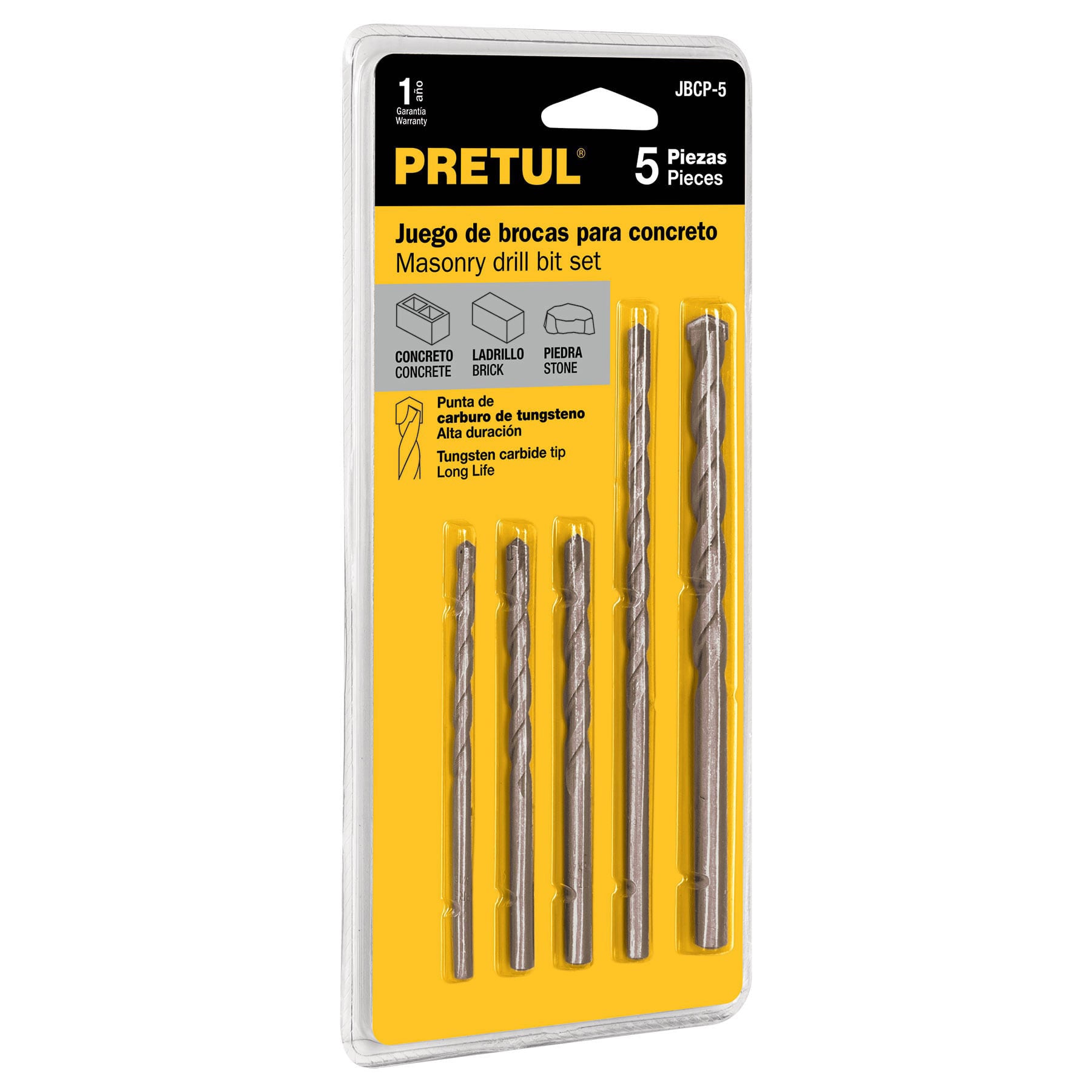 JBCP-5 Juego de brocas para concreto, 5 piezas, pretul