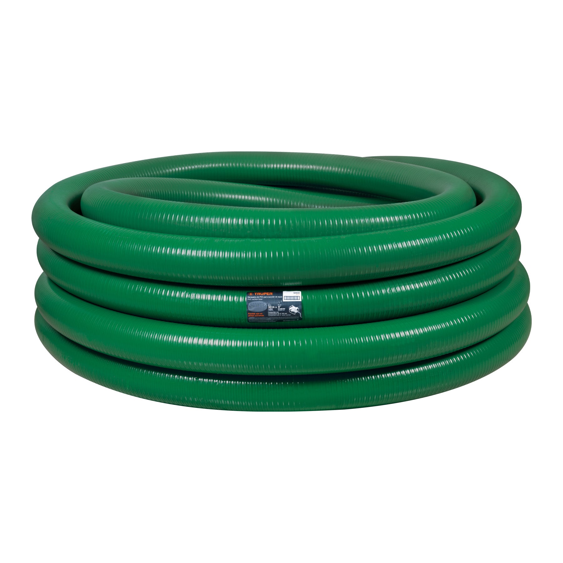 Metro de manguera de 4 pulgadas diseñado para succión de líquidos, ideal para motobombas y sistemas de riego. Fabricado para ofrecer durabilidad y un flujo eficiente, facilitando conexiones seguras y confiables.