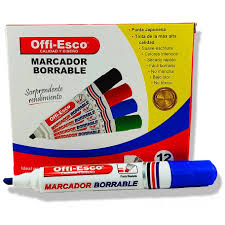 Marcador de tinta azul borrable, ideal para escribir en pizarras blancas o superficies no porosas. Su tinta de secado rápido se borra fácilmente con paño seco o borrador. Punta redonda o biselada según el modelo. Uso común en oficinas, aulas y entornos educativos.