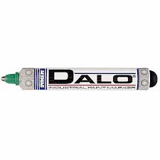 Marcador de tinta color verde, diseñado para uso industrial, comercial o general. Escribe sobre diversas superficies como metal, plástico, vidrio, madera y cartón. Su tinta es opaca, de secado rápido y resistente al agua, al desgaste y a la intemperie. Ofrece trazos nítidos y duraderos, gracias a su punta robusta y su fórmula de alta adherencia. Ideal para señalización y marcación permanente.