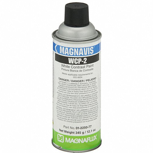 - WCP-2 ofrece un fondo de alto contraste para mejorar la probabilidad de detección y la sensibilidad durante las inspecciones con partículas magnéticas visibles. Esta pintura brillante blanca de contraste se aplica antes de la inspección, de modo que cuando se aplican partículas magnéticas no fluorescentes/de color, las indicaciones aparecen claramente contra el fondo blanco opaco. La pintura WCP-2 puede utilizarse con todos los tipos de partículas magnéticas de color y visibles, incluidas las partículas 7HF o 7C Black para método húmedo o los polvos magnéticos #2 Amarillo y #8A Rojo.