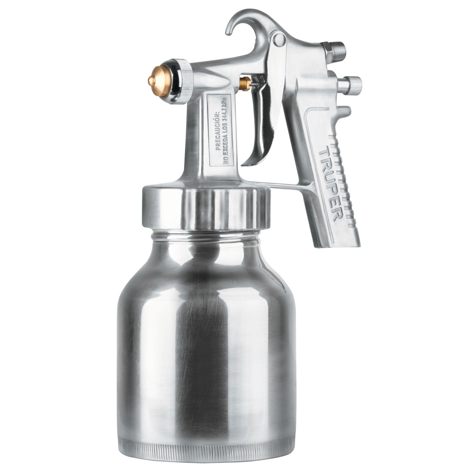 Pistola para pintar diseñada para trabajos de baja presión, con acabado pulido que facilita la limpieza y ofrece mayor resistencia a la corrosión. Cuenta con entrada superior para el recipiente de pintura, permitiendo un manejo cómodo y un control preciso del flujo.