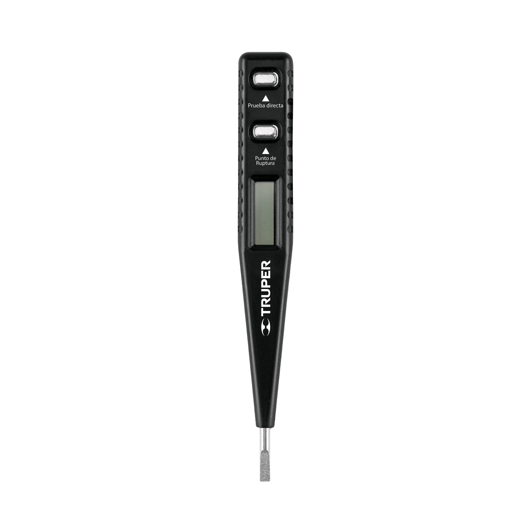 Probador digital compacto para verificar la presencia de tensión y la polaridad en instalaciones eléctricas. Ideal para diagnosticar conexiones en tomacorrientes, enchufes y cables. Ofrece lecturas rápidas y seguras, siendo una herramienta esencial para electricistas y técnicos de mantenimiento.