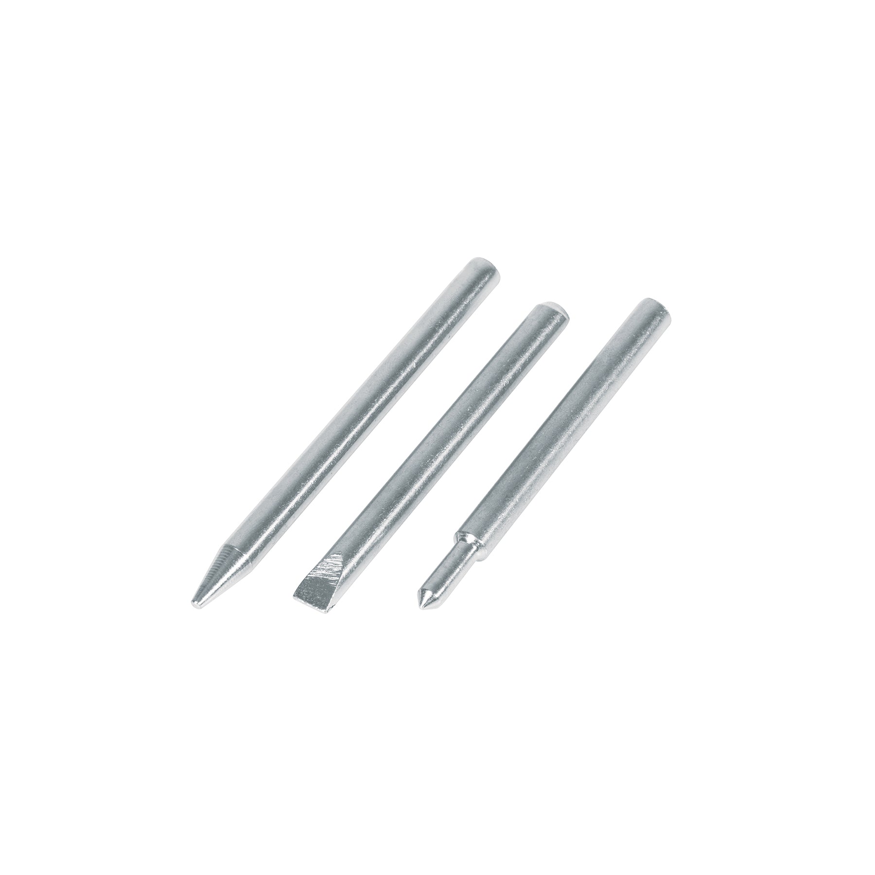 Set de 3 puntas de repuesto diseñadas para el cautín tipo lápiz CAU-80. Ofrecen alta durabilidad y excelente conducción térmica, ideales para mantener la eficiencia en trabajos de soldadura. Fáciles de cambiar y perfectas para prolongar la vida útil del cautín.