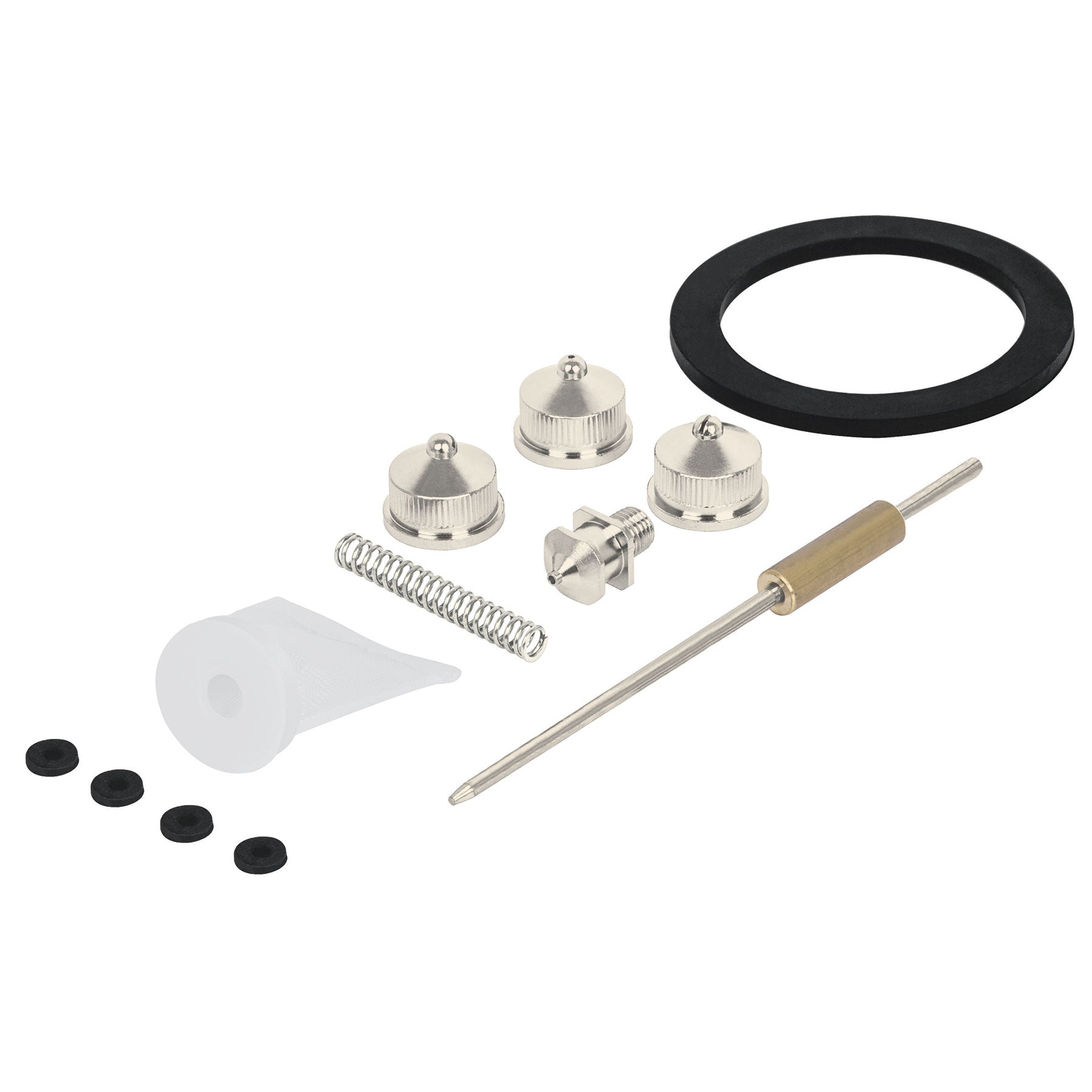 Juego de repuestos para pistola para pintar modelo PIPI-200, incluye piezas esenciales para su mantenimiento y óptimo funcionamiento.