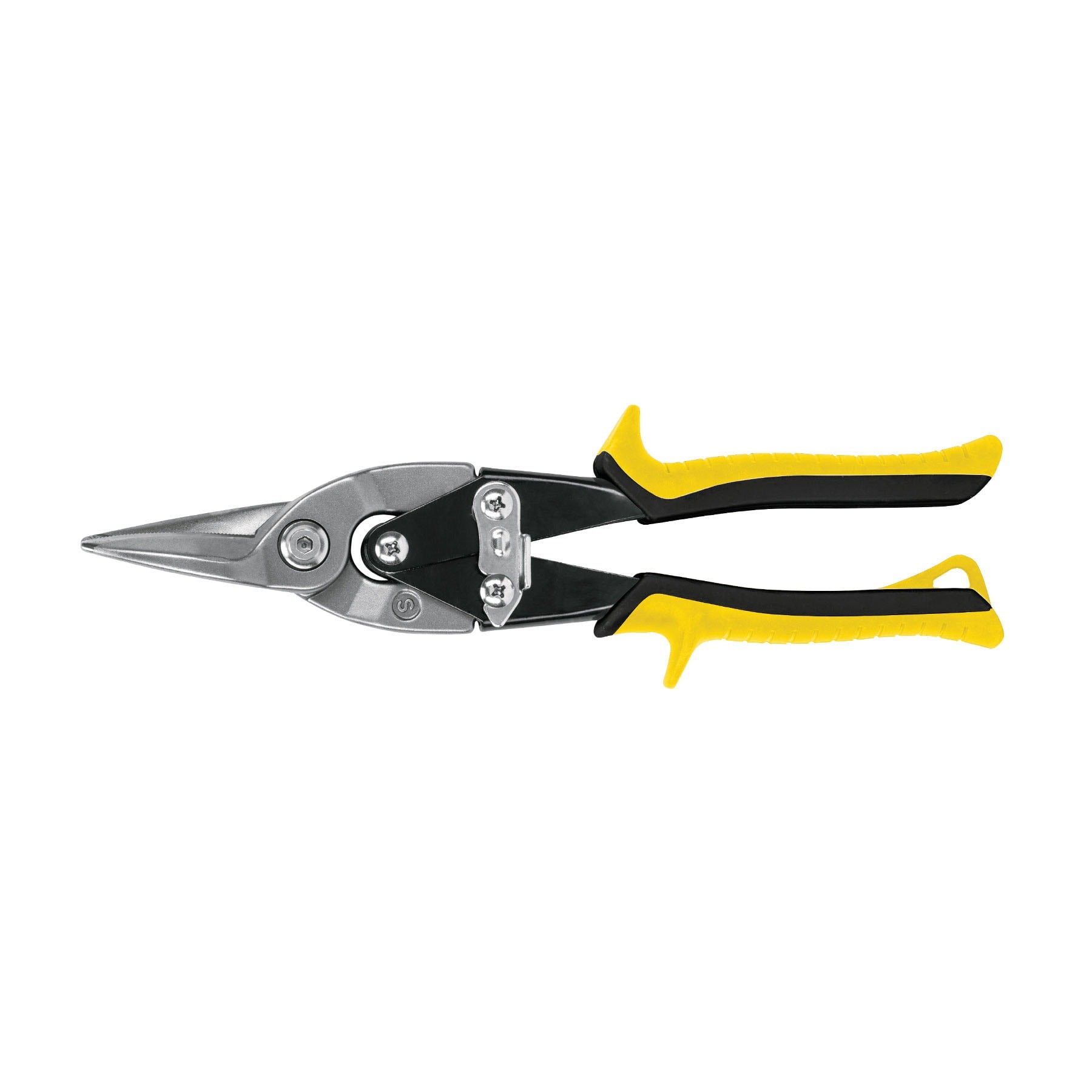 Tijera de aviación diseñada para realizar cortes rectos y prolongados en láminas metálicas. Construida en acero de alta resistencia con filos dentados que evitan el deslizamiento durante el corte. Sus mangos ergonómicos y antideslizantes proporcionan mayor control y comodidad. Ideal para trabajos de metalmecánica, ductería y hojalatería.
